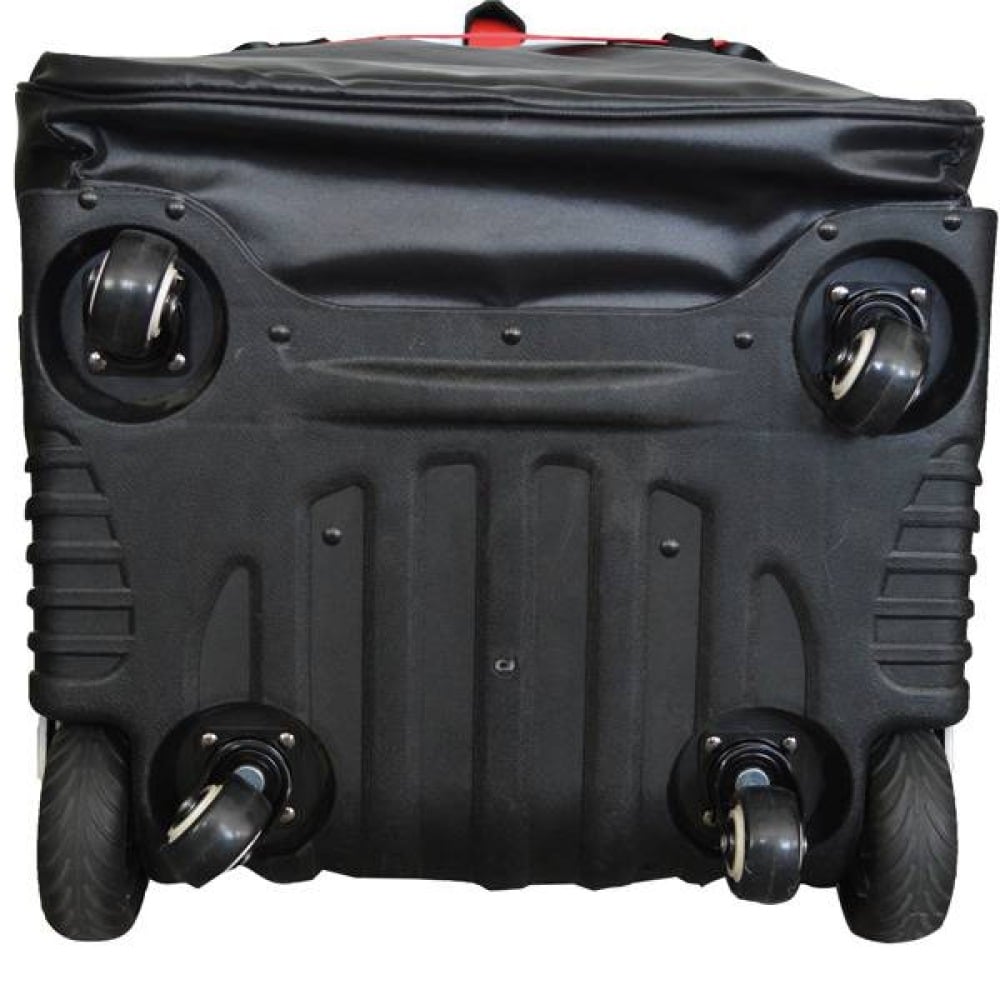 6 skateboard wheels make it easy to transport. With the extremely practical TCS Travel Connect System, you can also connect the travel cover to your luggage and transport it easily. The travel cover has ball-bearing wheels and the easy-carry handle.