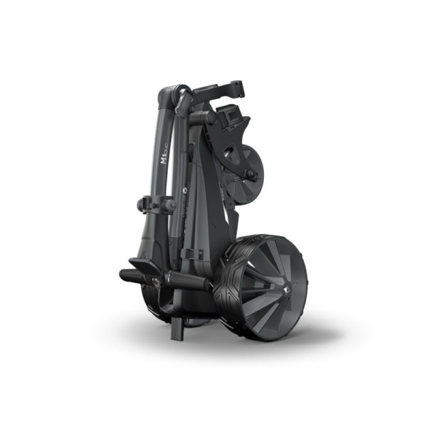 The foldable, compact M1 DHC electric trolley offers the same outstanding features as the new M1, but also features a downhill brake and an electronic immobilizer – which enables controlled downhill driving even on mountainous golf courses.