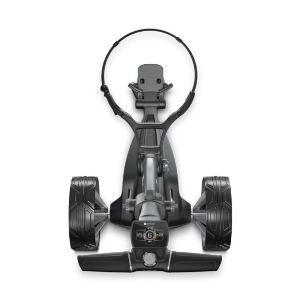 Other features include an integrated safety cut-off system; an auto-open stand mechanism; a new tubular frame design for better grip stability; plus the exclusive Motocaddy EASILOCK™ bag/trolley connection system, eliminating the need for a lower bag strap.