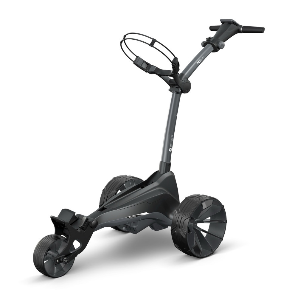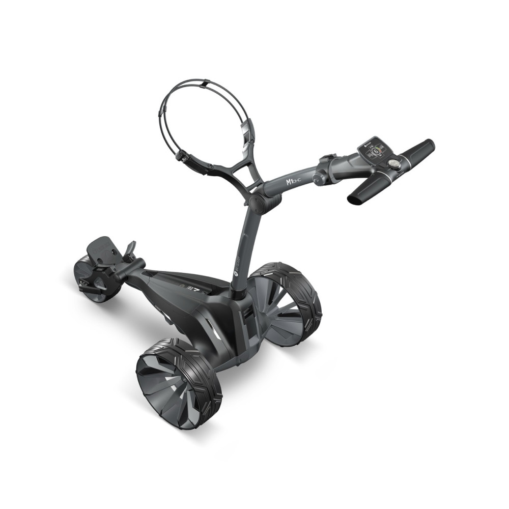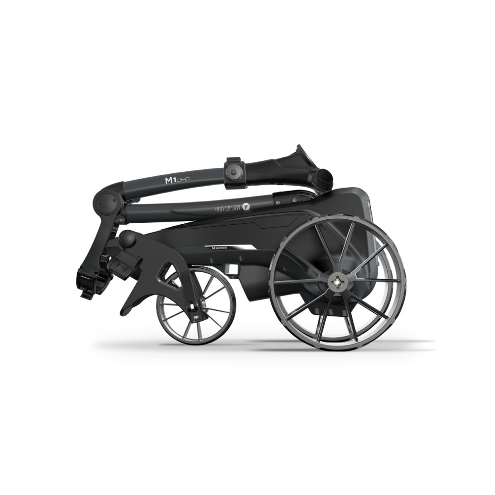 The foldable, compact M1 DHC electric trolley offers the same outstanding features as the new M1, but also features a downhill brake and an electronic immobilizer – which enables controlled downhill driving even on mountainous golf courses.